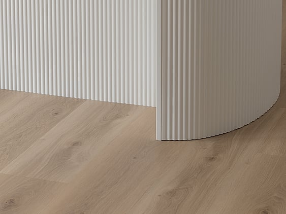 The team developed and executed the solution themselves, ensuring the curve integrated seamlessly with the cabinetry and surrounding finishes.