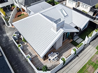 The owners of this Kohimarama home fell in love with the property for its location but were less charmed by the 1950s bungalow that existed on the land. In our third project partnering with this client, we transformed the tired house into a modern gable-roofed home.